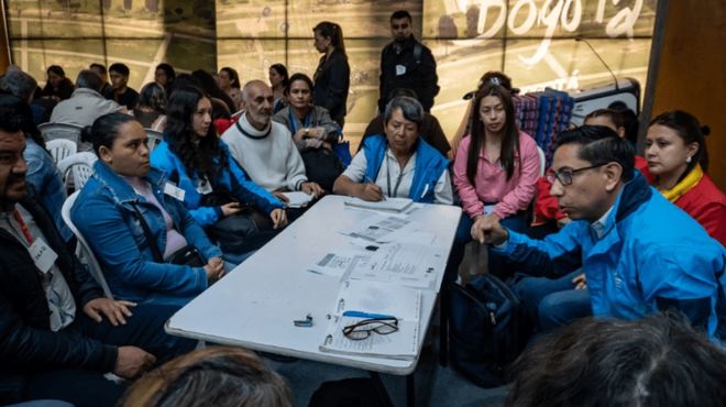 Plantón pacífico frente a la sede de Nueva EPS, en el sector de San Cayetano.