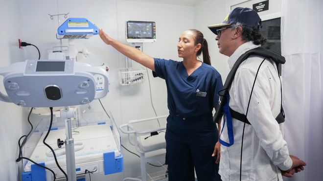 El presidente Gustavo Petro recorre las instalaciones del buque hospital. |